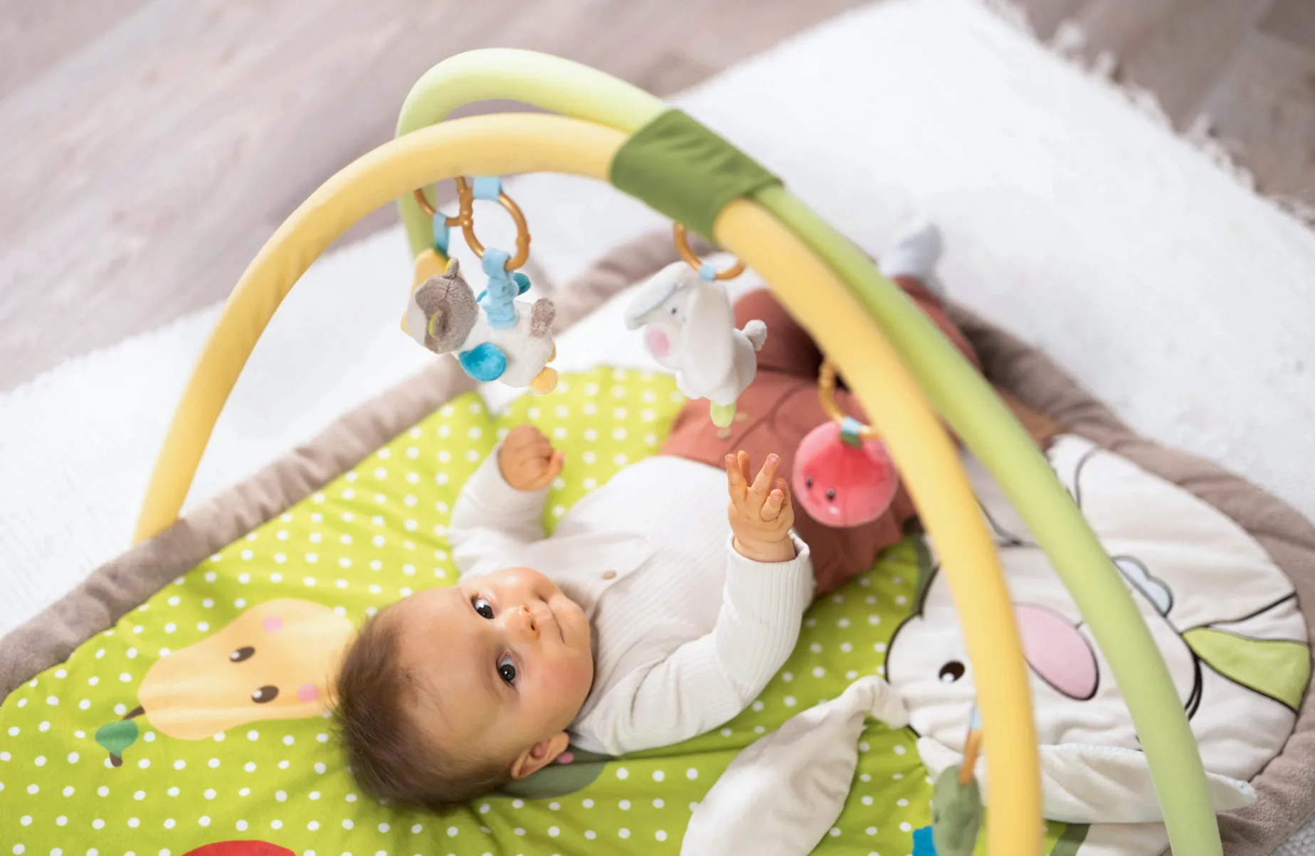 3-D Activity-Decke Hase und Eule mit Spielkissen und Spielbogen