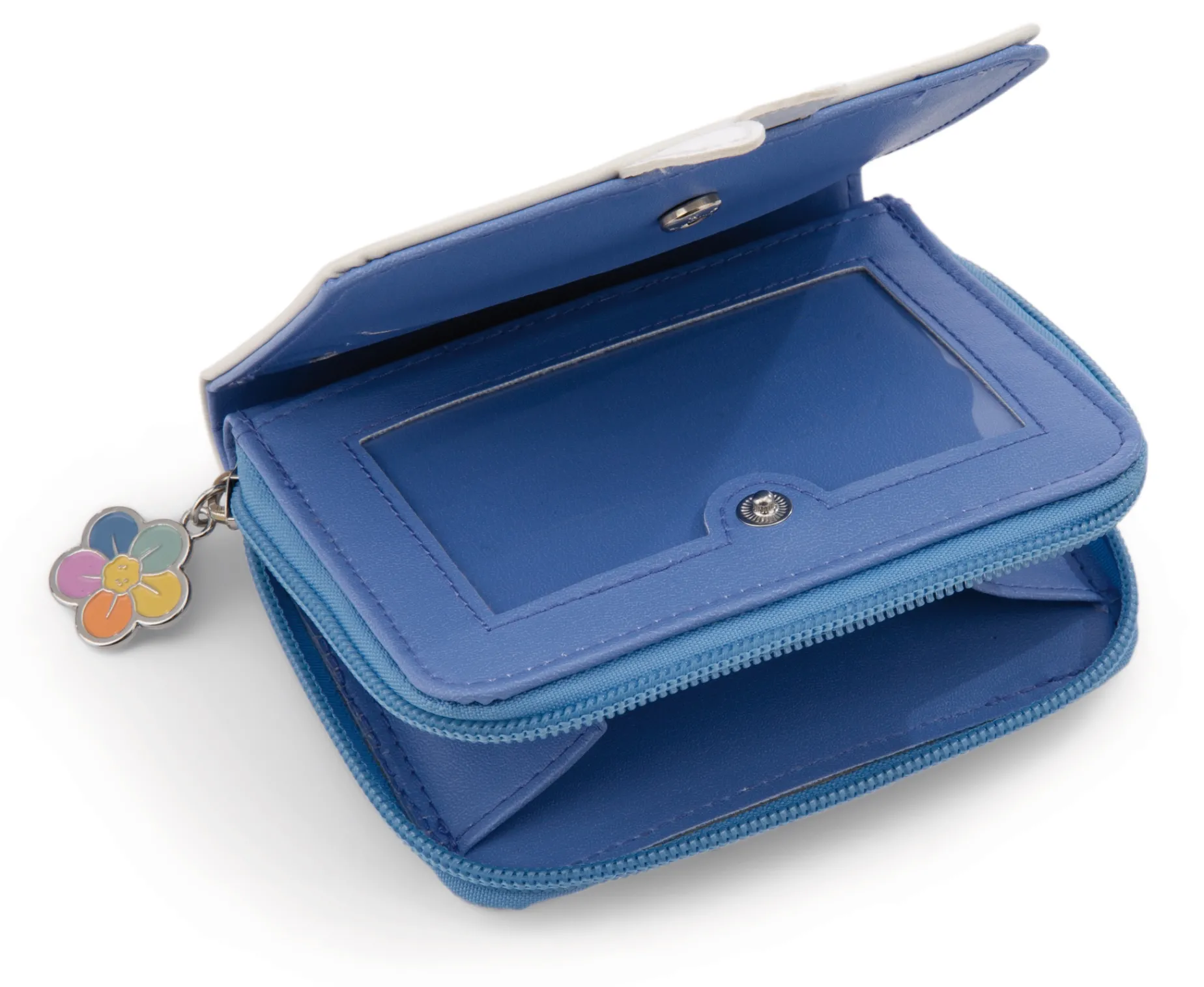 Molang als Geldbeutel? Super Idee! Der liebenswerte Charakter aus der gleichnamigen TV-Serie und bekannt aus Social Media, verbreitet immer gute Laune und zaubert jedem durch seinen niedlichen Gesichtsausdruck ein Lächeln auf die Lippen. Der Geldbeutel mit den 2D Ohren aus strapazierfähigem PU-Material bietet ausreichend Platz für Münzgeld, Scheine und Karten. Das aufklappbare Portemonnaie wird zusätzlich durch einen Druckverschluss zusammengehalte. Der Inhalt der Geldbörse ist sicher verwahrt durch einen Reißverschluss mit buntem Charm-Anhänger in Form einer Regenbogenblume.