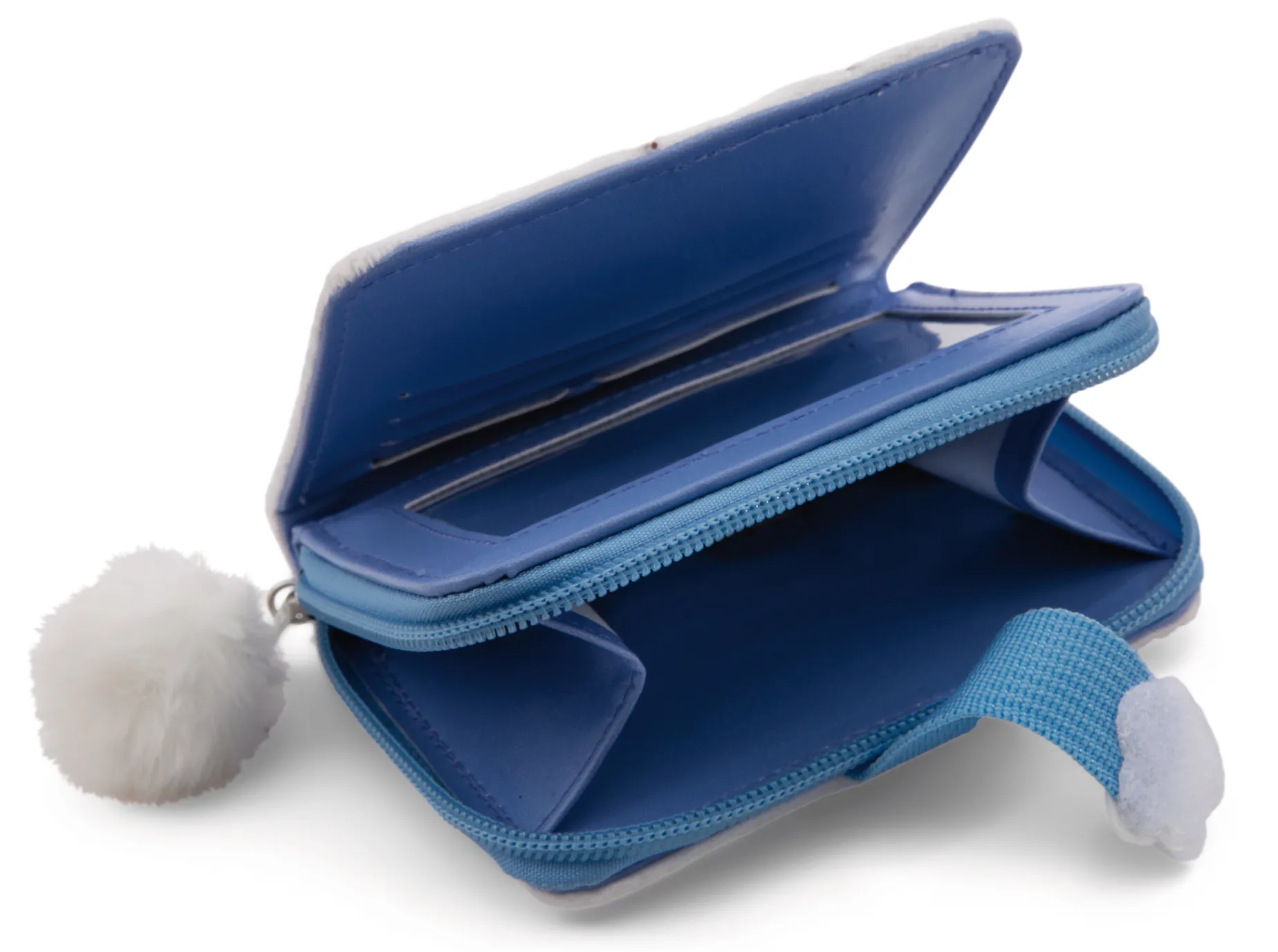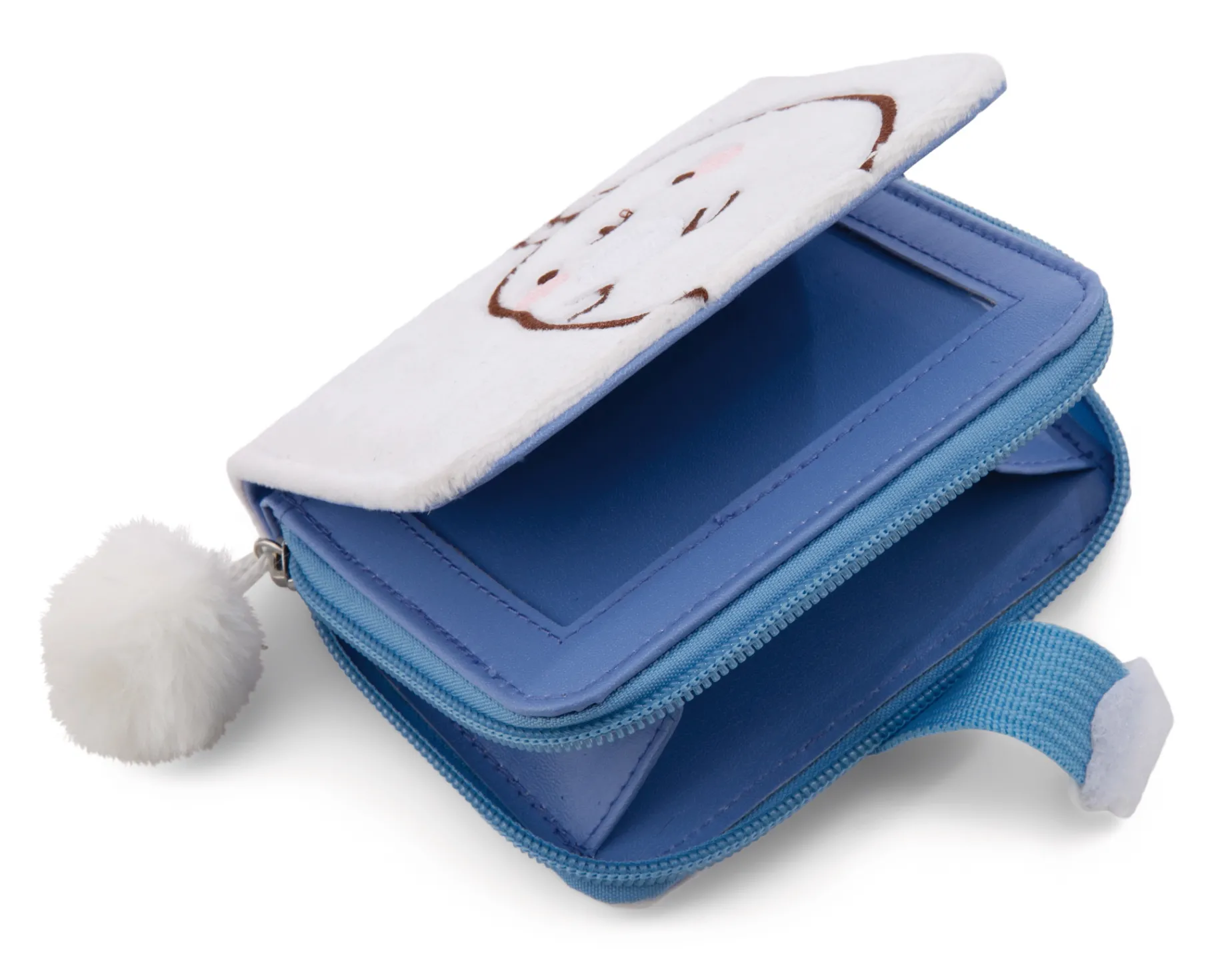 Der weiße Geldbeutel zeigt Molang, den liebenswerten Charakter aus der gleichnamigen TV-Serie und bekannt aus Social Media, auf der Vorderseite und dem MOLANG Logo auf der Rückseite. Die Geldbörse begeistert durch ihre flauschige Plüsch-Optik, einem violetten Reißverschluss mit Pompom Anhänger, einer bunten Regenbogenblume als Klettverschluss sowie jeder Menge Platz für Münzgeld und Scheine. Das detailverliebte Portemonnaie liegt perfekt in der Hand und ist ein zauberhaftes Geschenk für kleine MOLANG Fans.