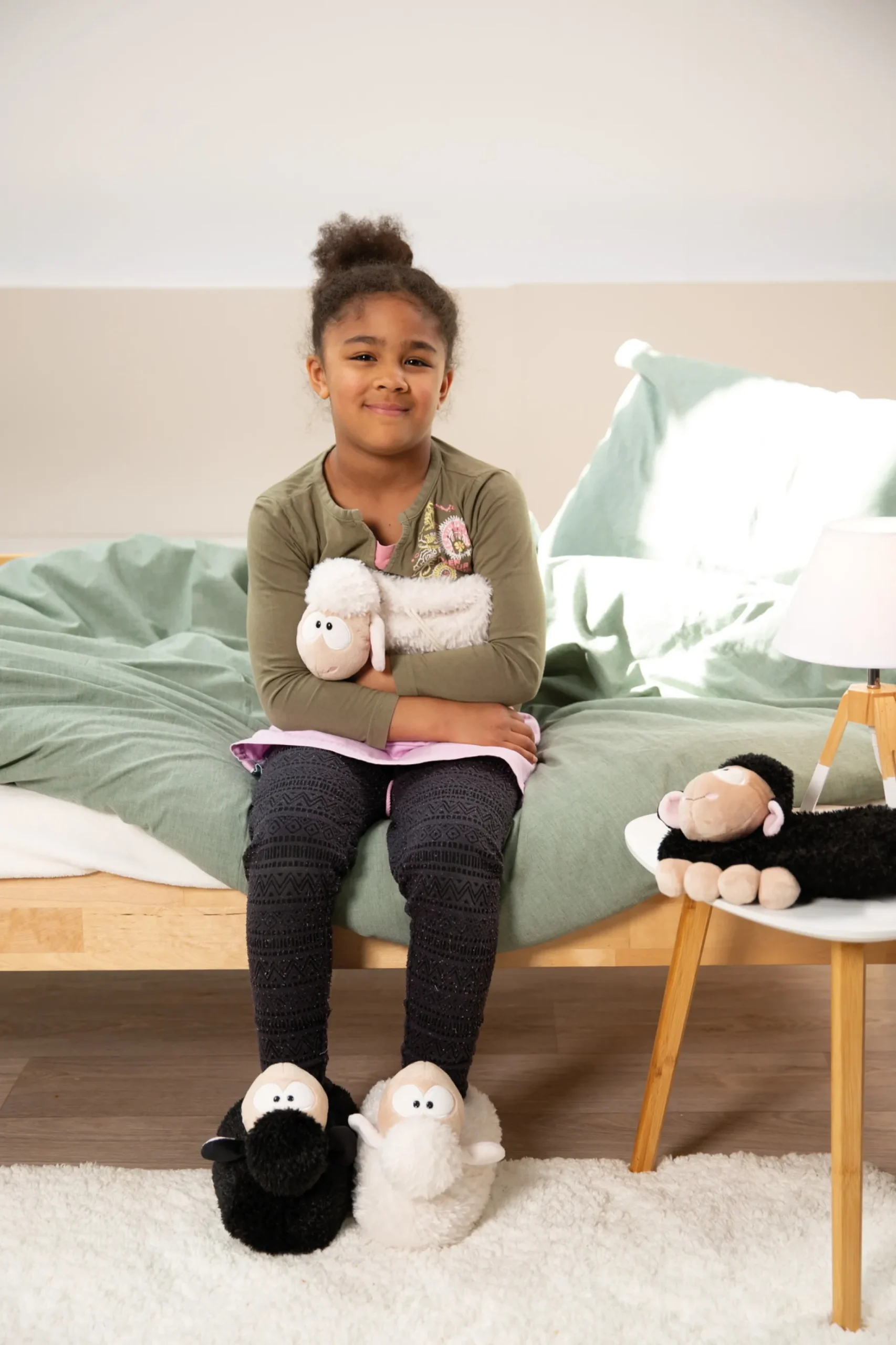 Hineinschlüpfen und sich wohlfühlen! In den kuscheligen Schäfchen Hausschuhen erlebt man den ultimativen Fußkomfort mit einem Hauch Wool*y Gang Flair. Die beiden Schafe in Schwarz und Weiß schmiegen sich wollig an den Fuß und sorgen für Wärme und Bequemlichkeit. Hochwertiges NICI-Plüschmaterial, beste Verarbeitungsqualität und mit einer Anti-Rutsch Sohle versehen, sind sie ein zauberhaftes Geschenk für jedes Alter und Geschlecht. Die Hausschuhe sind Teil der NICI GREEN Produktwelt. Für NICI GREEN Produkte verwenden wir fast ausschließlich Plüsch- und Füllstoffe, die aus recycelten Materialien bestehen. Hierfür werden vor allem alte PET-Flaschen zu RPET verarbeitet.