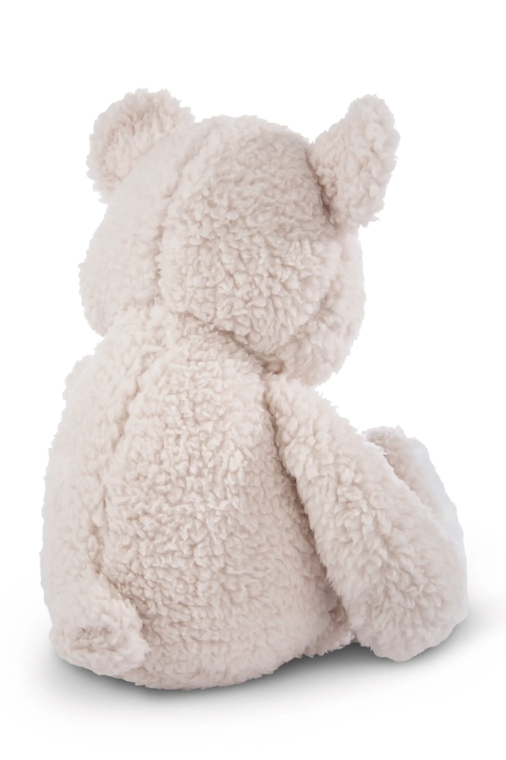 Der liebenswerte Bär Bendix, ein klassischer Teddybär aus besonders kuschelweichem, beigefarbenem Teddyplüsch, ist ein weiteres Mitglied der NICI Bärenfamilie. Mit seinem niedlichen Gesichtsausdruck und den großen Tatzen mit dunkelbraunen Plüsch-Applikationen ist er ein wahrer Freund zum Spielen, Kuscheln und Einschlafen. Bendix enthält ein Granulat-Säckchen, das eine außergewöhnliche Haptik verspricht und für Stabilität beim Sitzen sorgt. Bendix ist, als treuer Begleiter durch die Kindheit. Bendix ist Teil der NICI GREEN Produktwelt. Für NICI GREEN Produkte verwenden wir fast ausschließlich Plüsch- und Füllstoffe, die aus recycelten Materialien bestehen. Hierfür werden vor allem alte PET-Flaschen zu RPET verarbeitet.