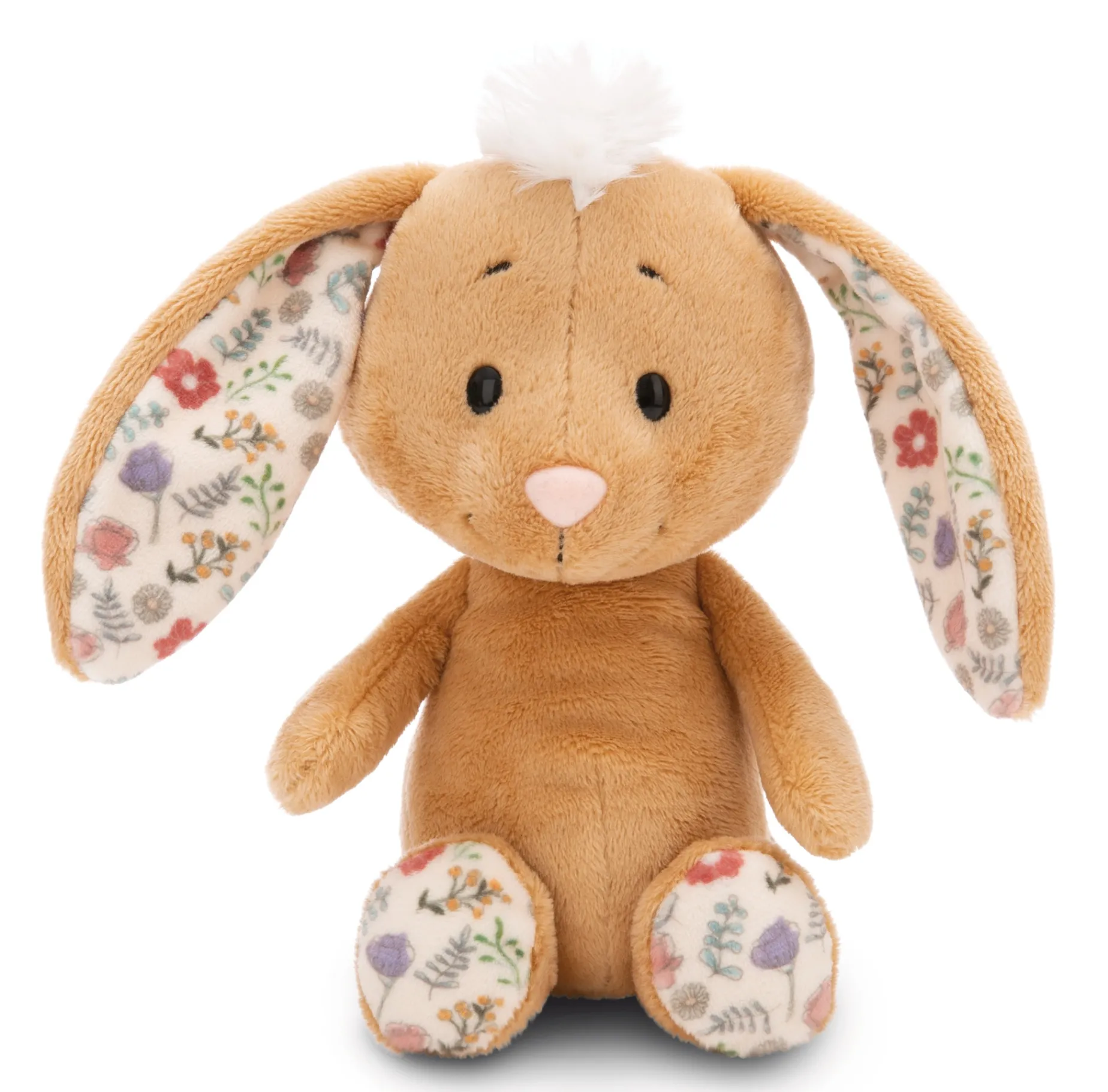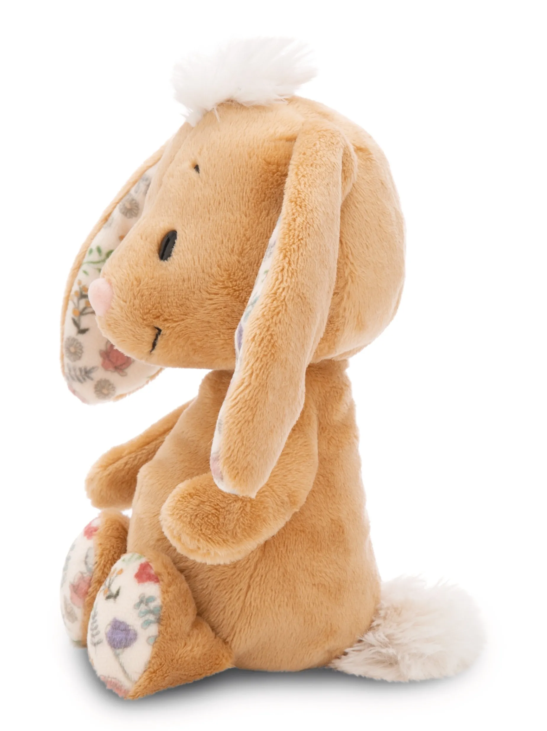 Hoppel di hopp ins Osternest! Das niedliche, hellbraune Plüschhäschen mit einem witzigen Puschel auf dem Kopf begeistert nicht zuletzt durch seine softig weiche Flauschigkeit. Mit einer Größe von 20cm ist er perfekt zum Kuscheln und Liebhaben. Sein weicher Plüschkörper und sein entzückender Gesichtsausdruck zaubern sofort ein Lächeln in das Gesicht kleiner und großer Hasenfans. Die langen Schlappohren mit einem zarten Blumenmuster auf der Innenseite, das sich auch an den Unterseiten der Füßchen wiederfindet, verleihen dem Happy Rabbit Häschen darüber hinaus eine besonders niedliche Note. Der Happy Rabbit Hase ist Teil der NICI GREEN Produktwelt. Für NICI GREEN Produkte verwenden wir fast ausschließlich Plüsch- und Füllstoffe, die aus recycelten Materialien bestehen. Hierfür werden vor allem recycelte PET-Flaschen zu RPET verarbeitet.