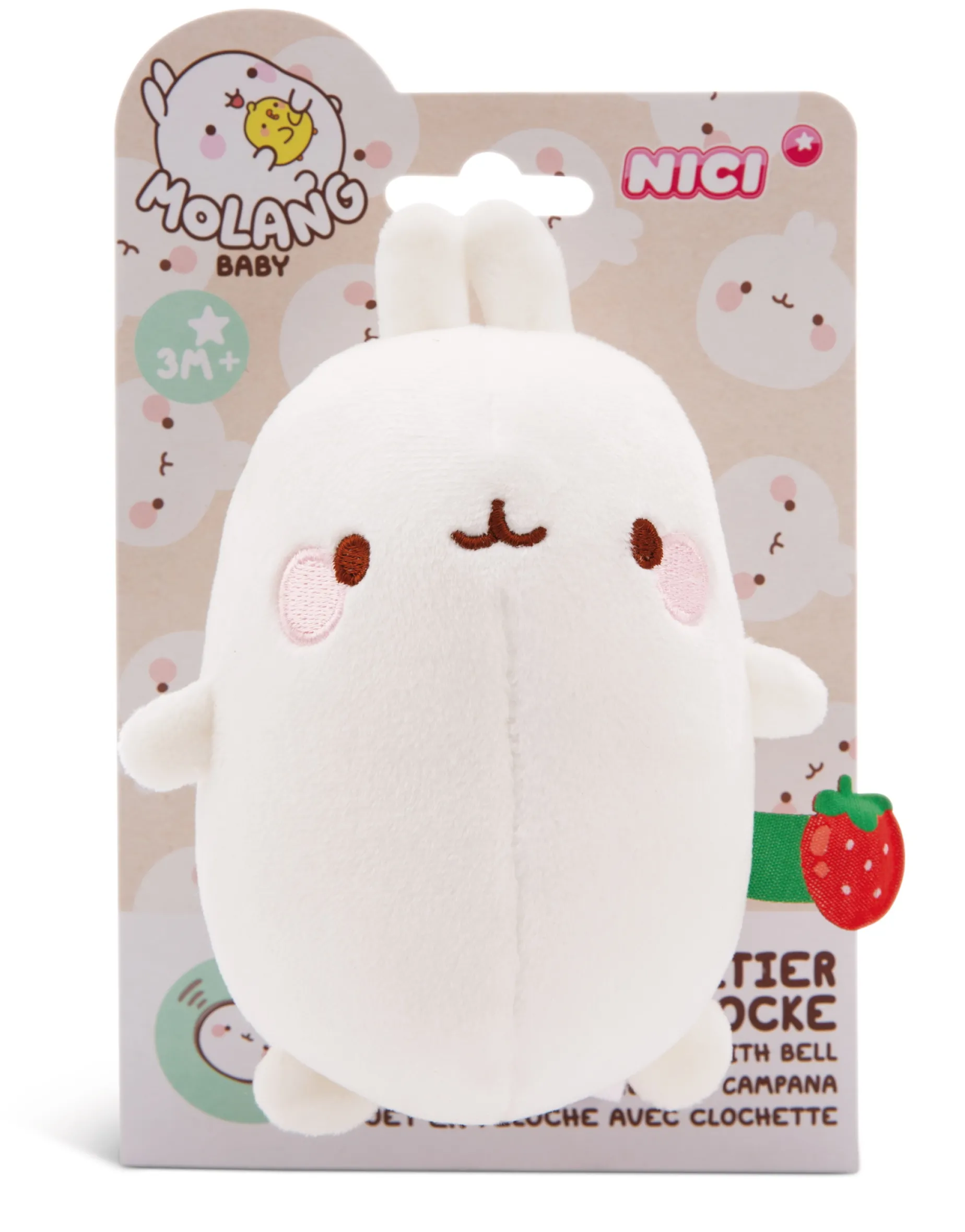Molang, der liebenswerte Charakter aus der gleichnamigen TV-Serie und bekannt aus Social Media, ist ein zauberhafter Spielkamerad fürs Baby aus super kuscheligem, weißem Softplüsch. Mit seinem niedlichen Gesichtchen, den süßen Hasenohren, die die zarten Babyhände zum Greifen einladen und der besonders knuddeligen Füllung kuschelt sich Molang in jedes Kinderherz. Das Glöckchen im Inneren klingelt, sobald Molang geknuddelt und geschüttelt wird. Aber das 12cm große Kuscheltier Molang ist mehr als nur Spielzeug. Er ist der erste Freund für Baby, der Geborgenheit und Trost spendet, die Fantasie anregt und die ersten Sinneserfahrungen fördern. Molang wird schnell zum treuen Begleiter des Babys und ist immer da zum Kuscheln, Beschützen, Trösten und Schlafen.