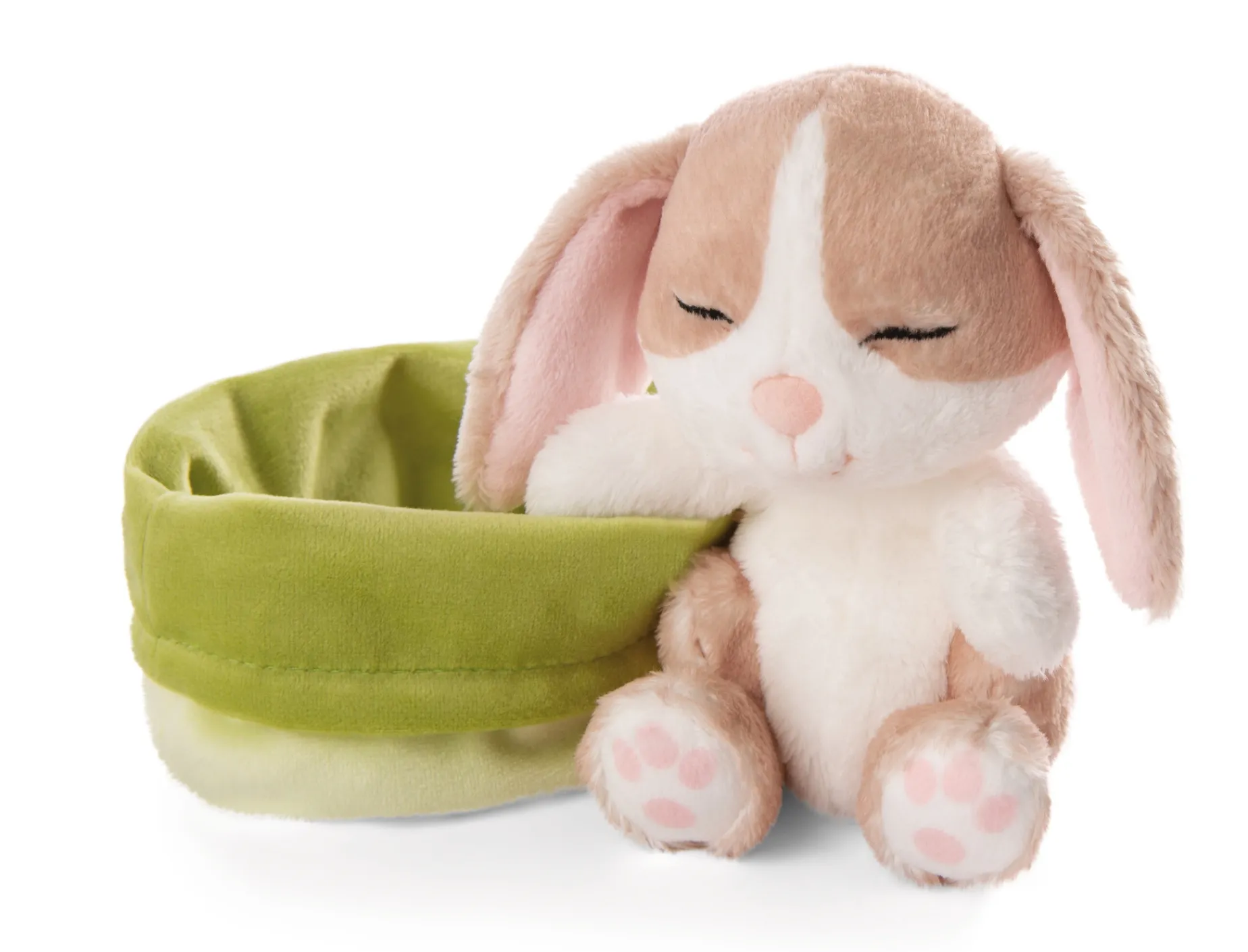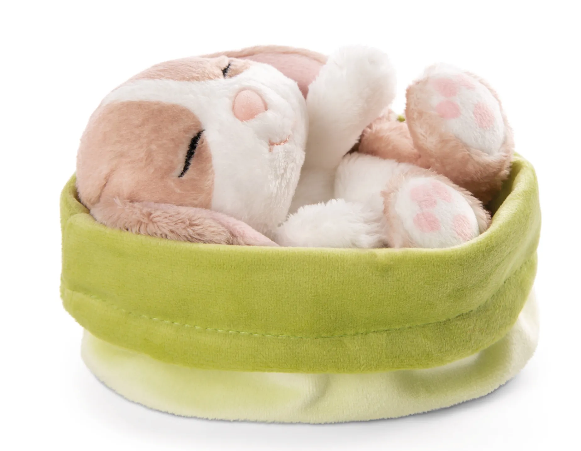 Kuscheltier Sleeping Pets Hase cappuccino 12cm im grünen Körbchen