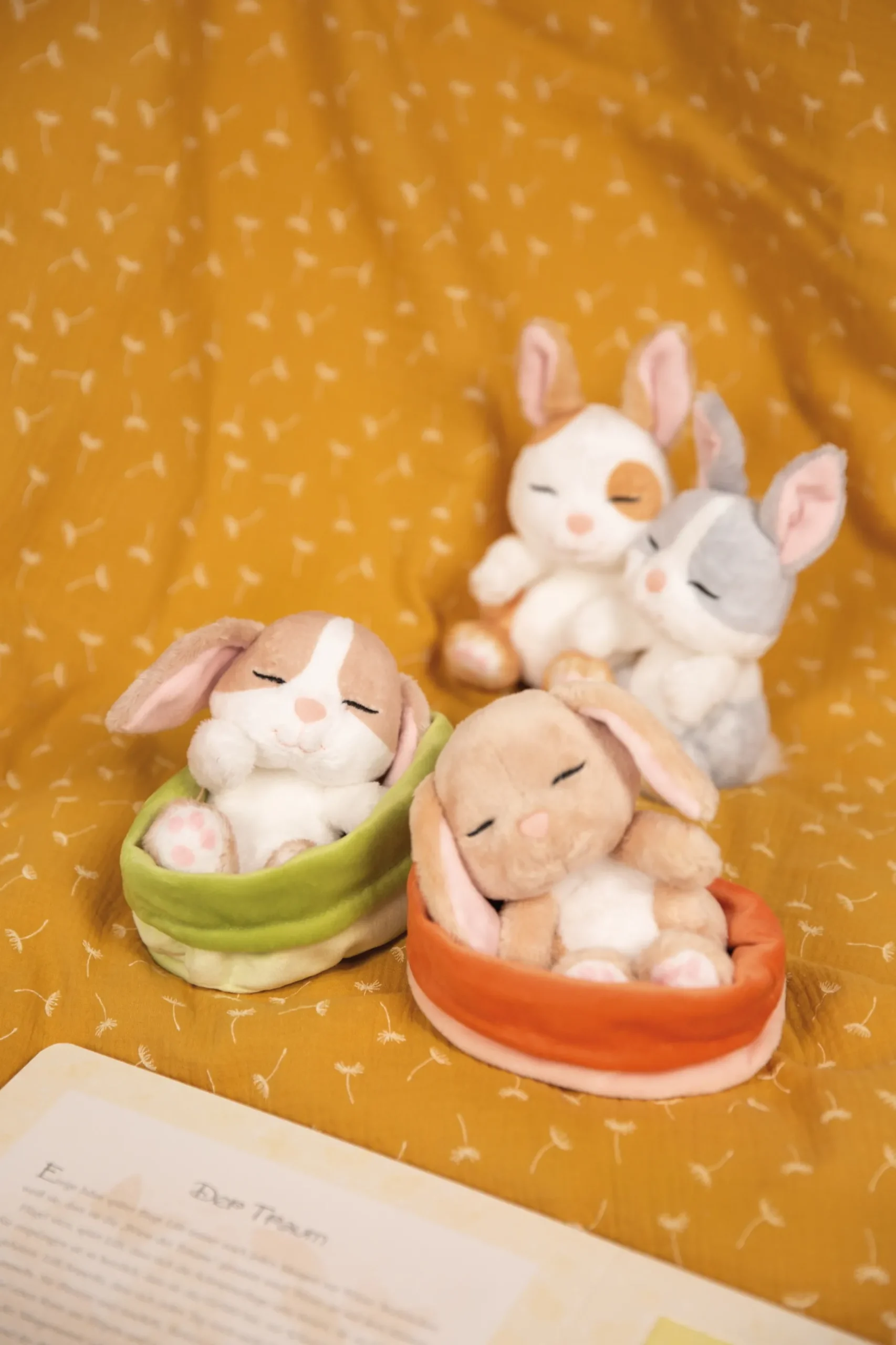 Müde bin ich, geh zur Ruh‘, schließe meine Äuglein zu! Das flauschig weiche Plüsch-Häschen mit grauer-weißer Fellfarbe verzaubert Klein und Groß mit seinem extrem niedlichen Gesichtsausdruck und den gestickten Schlafaugen. Dem 12cm großen Mümmler kann man es nicht verdenken, dass er es sich in dem grünen Plüschkörbchen so richtig gemütlich gemacht hat. Häschen und Nest sind einzeln bespielbar und aus hochwertigen Materialien gefertigt. Die detailgetreue Verarbeitung garantiert einen hohen Kuschel- und Spielfaktor.