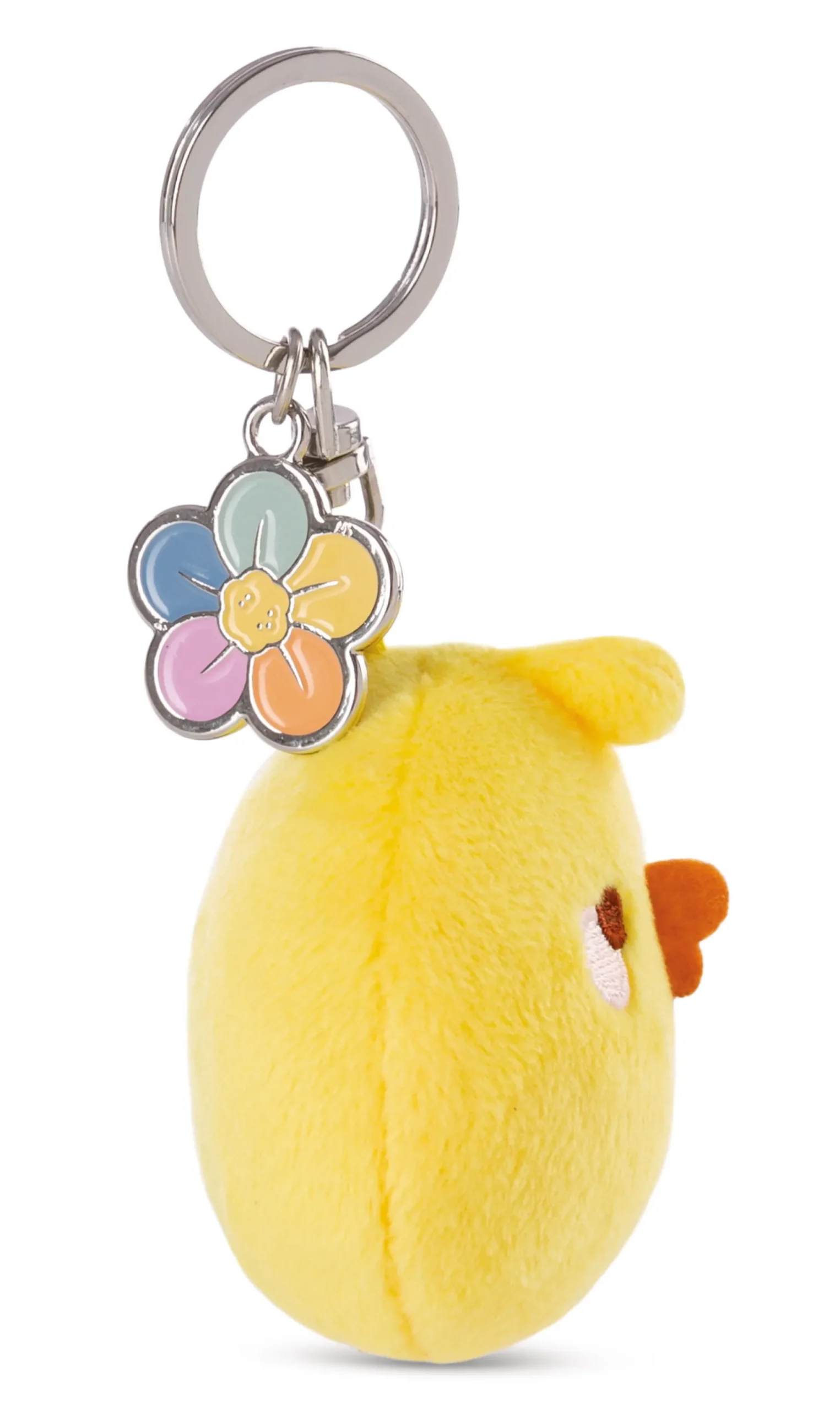 Piu Piu, der beste Freund in der MOLANG TV-Serie und bekannt aus Social Media, ist als plüschig weicher Schlüsselanhänger hält als flauschig weicher Schlüsselanhänger aus gelbem Softplüsch die Schlüssel zusammen und ist als Deko für Tasche, Rucksack oder Schulranzen ein echter Hingucker. An dem stabilen Schlüsselring aus Metall ist ein kleiner Charm-Anhänger in Form einer pastellfarbenen Regenbogenblume befestigt. Eine wundervolle Geschenkidee für kleine und große Molang und Piu Piu Fans!