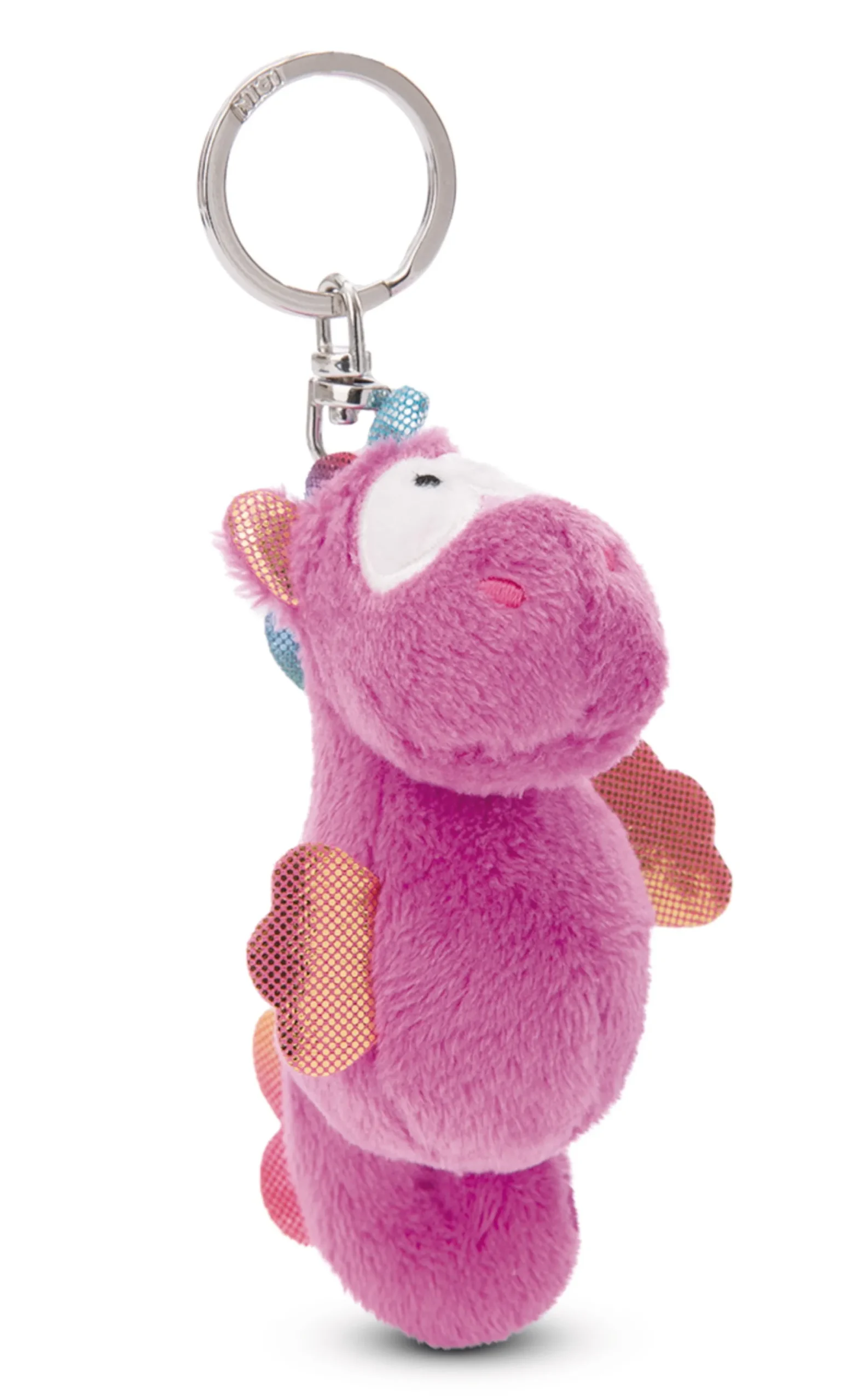 So einzigartig und so süß! Die zauberhafte Laguna Rainbow, ein flauschig weiches Seepferdchen mit dem Stirnhorn eines magischen Einhorns, begleitet ihre Fans im Alltag getreu dem Motto „Life is better with a sea unicorn“. Mit Hilfe eines stabilen Metallrings am Kopf kann das 9cm große Plüsch-Seehörnchen am Schlüsselbund, Rucksack oder Schulranzen befestigt werden. Das magentafarbene Meerestier ist ein liebenswertes Geschenk für Groß und Klein und begeistert durch den sanft geschwungenen Körper, das glitzernde Kopfhorn, eine gestickte Muschel auf der Flanke und kleine Flossen in Regenbogenfarben. Der Schlüsselanhänger ist Teil der NICI GREEN Produktwelt. Für NICI GREEN Produkte verwenden wir fast ausschließlich Plüsch- und Füllstoffe, die aus recycelten Materialien bestehen. Hierfür werden vor allem alte PET-Flaschen zu RPET verarbeitet.